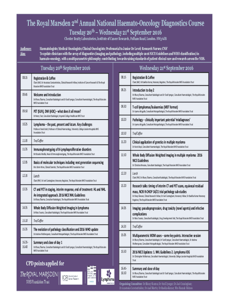 Register for the 2nd Annual National Haemato-Oncology Diagnostics Course at The Royal Marsden, enhancing clinical practices with 2016 NICE Guidelines.