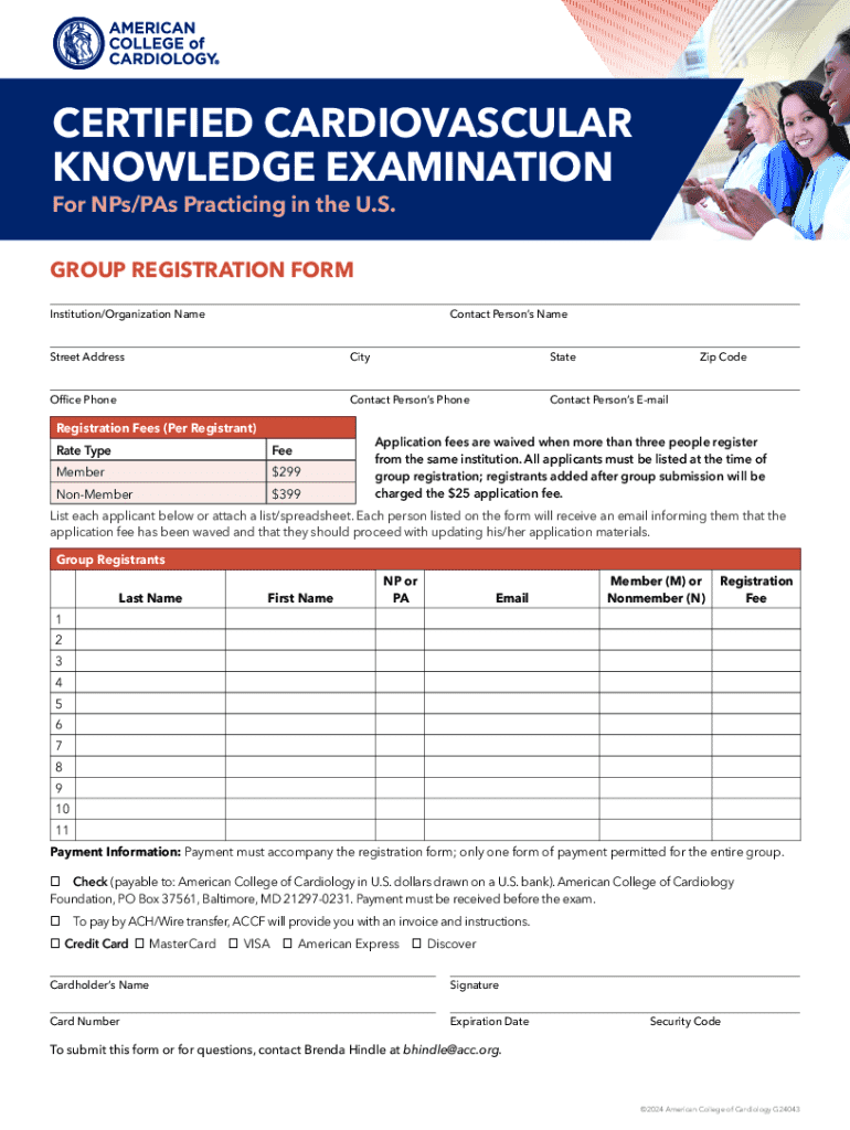 Get the free Certified Cardiovascular Knowledge Examination Group Registration Form