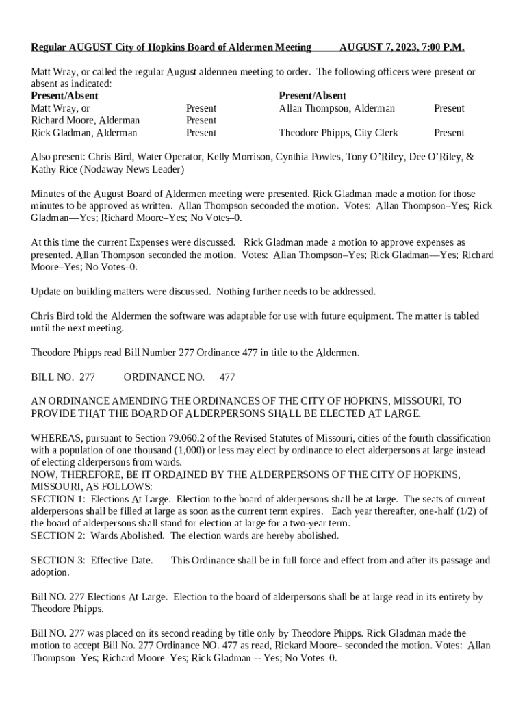 How to fill out Regular August City of Hopkins Board of Aldermen Meeting