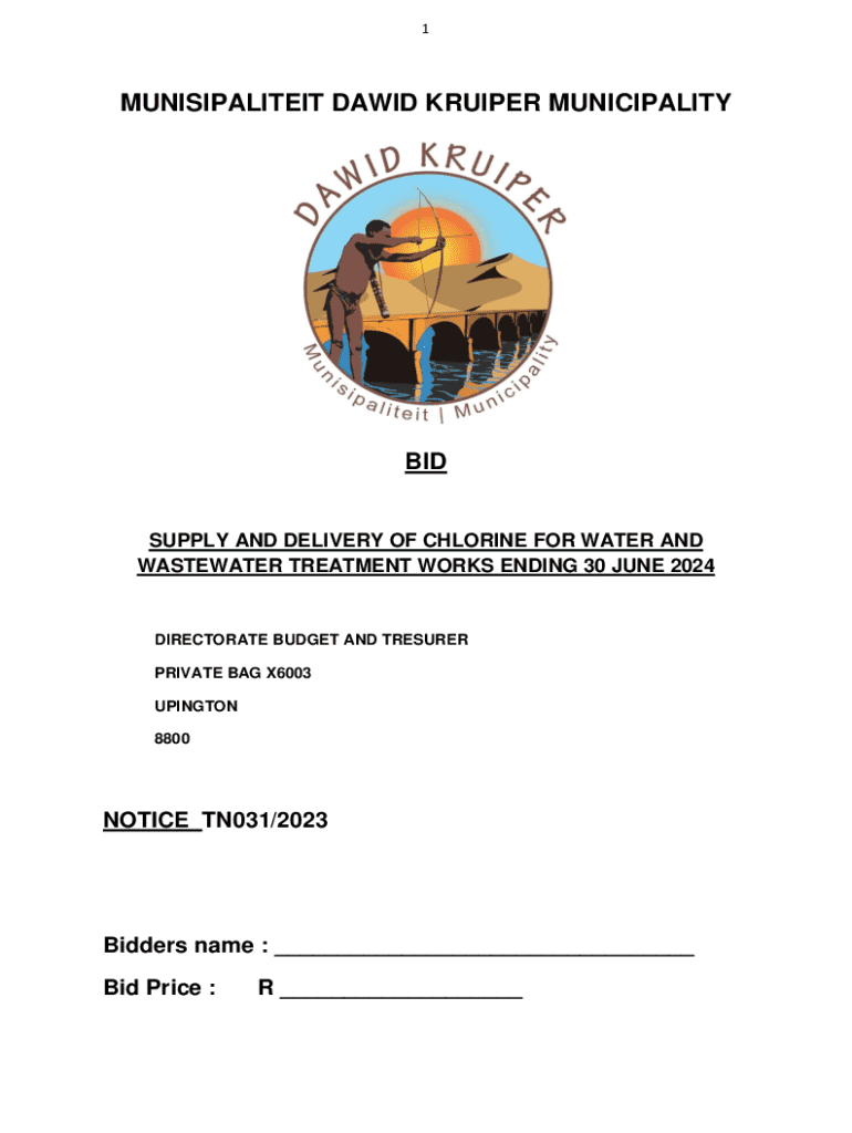 1MUNISIPALITEIT DAVID KUIPER MUNICIPALITYBIDSUPPLY AND DELIVERY OF CHLORINE FOR WATER AND