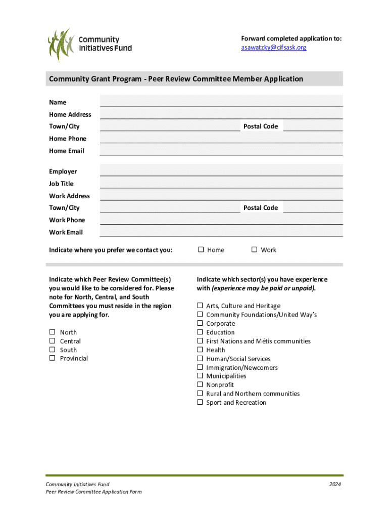 asawatzky@cifsask.orgCommunity Grant Program Peer Review Committee Member Application