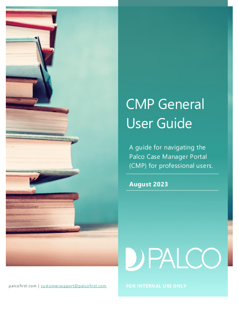 CMP General User Guide A guide for navigating the Palco Case Manager Portal (CMP) for professional users. August 2023palcofirst.com | customersupport@palcofirst.comFOR INTERNAL USE ONLYTable of ContentsCase