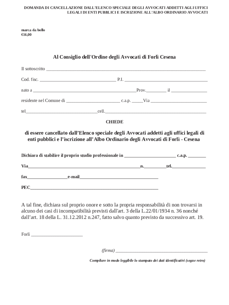 Instructions for the form Iscrizione e trasferimenti - Ordine degli Avvocati di Forl- ...
