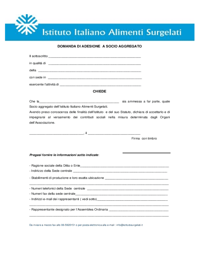 Ottieni il gratuito RICHIESTA DI ADESIONE ALL'ASSOCIAZIONE 1