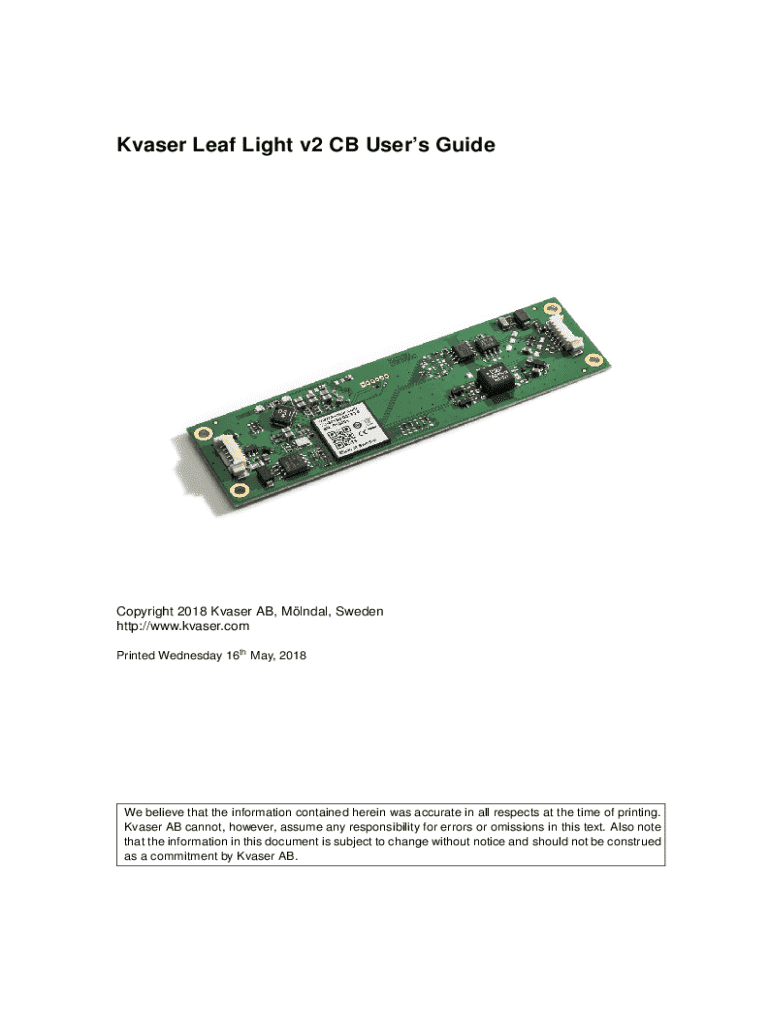 Get the free Kvaser Leaf Light V2 Cb User’s Guide