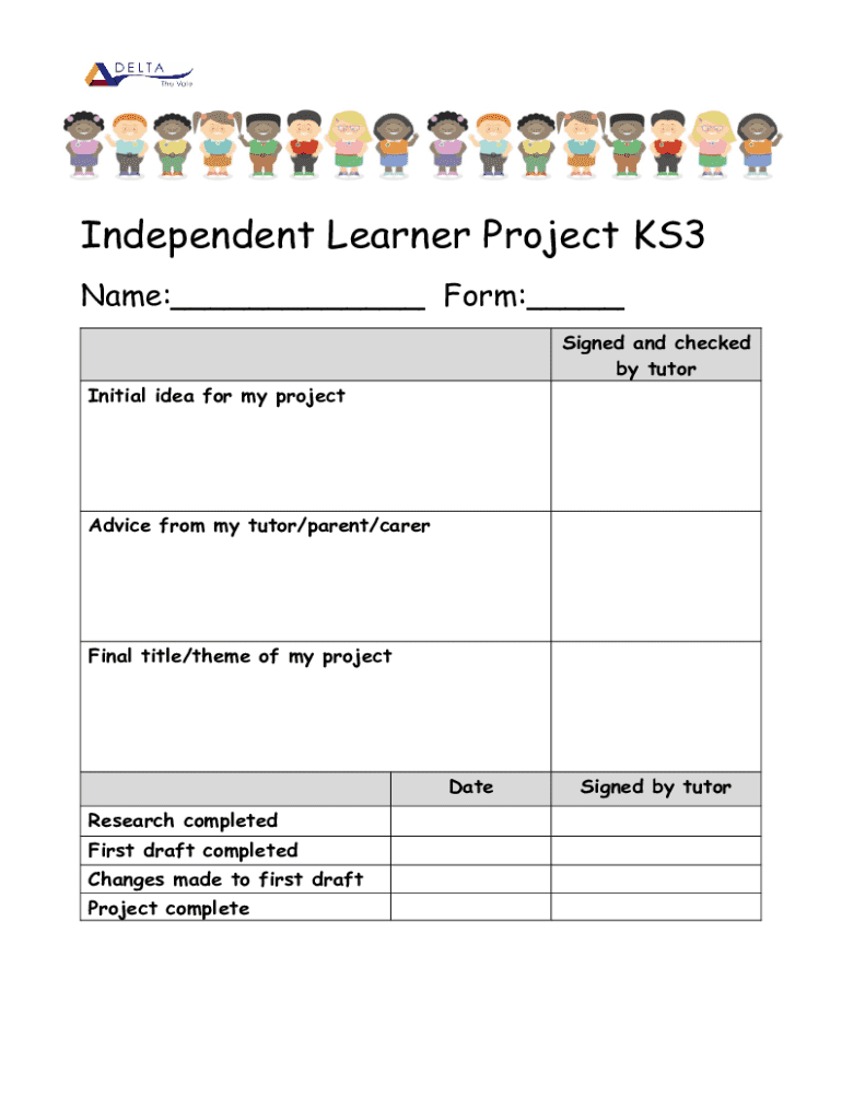 Independent Learner Project KS3 Name:___ Form:___ Signed and checked by tutor Initial idea for my projectAdvice from my tutor/parent/cardinal title/theme of my projectile Research completed First