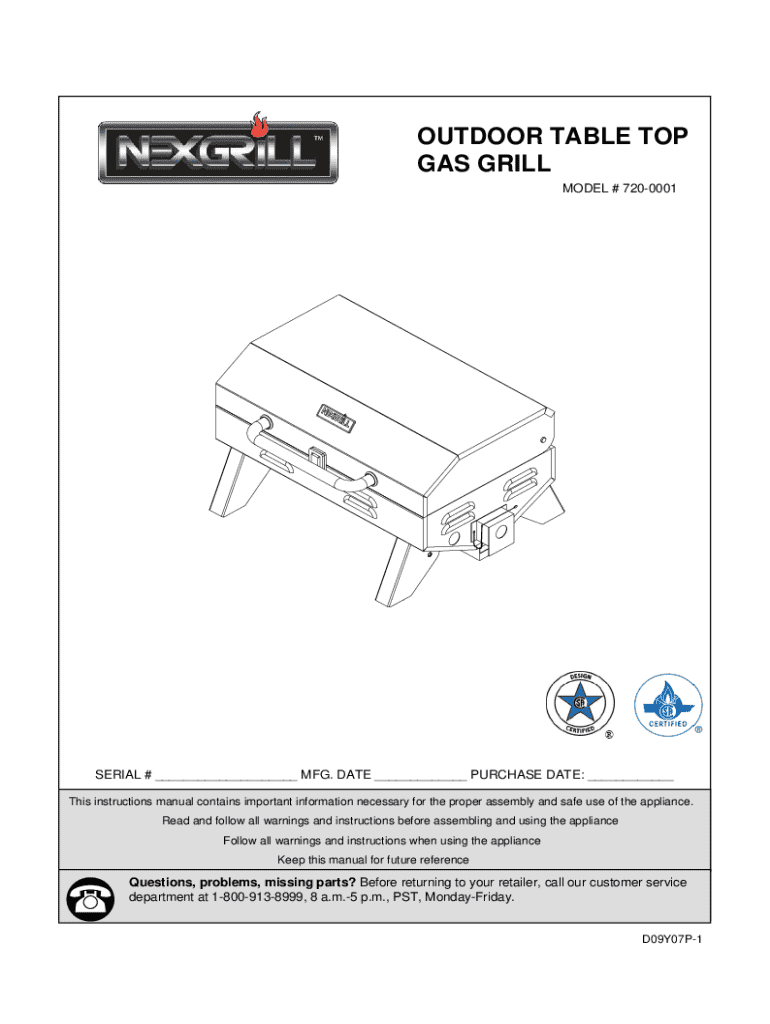 Get the free Outdoor Table Top Gas Grill Model #720-0001