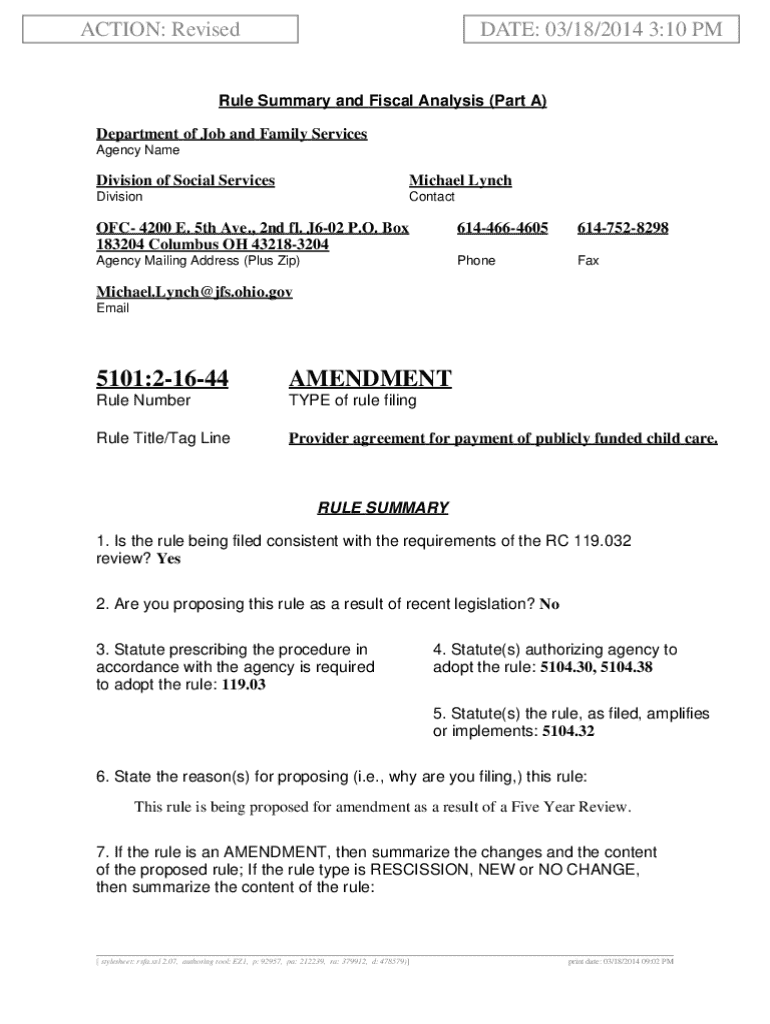 ACTION: RevisedDATE: 03/18/2014 3:10 Rule Summary and Fiscal Analysis (Part A)