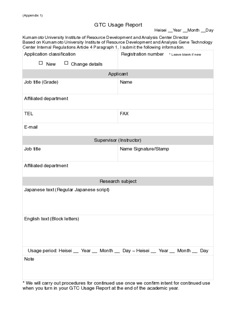 A usage application form is a document that individuals or organizations must complete to request permission or report details related to the utilization of a specific resource or service.