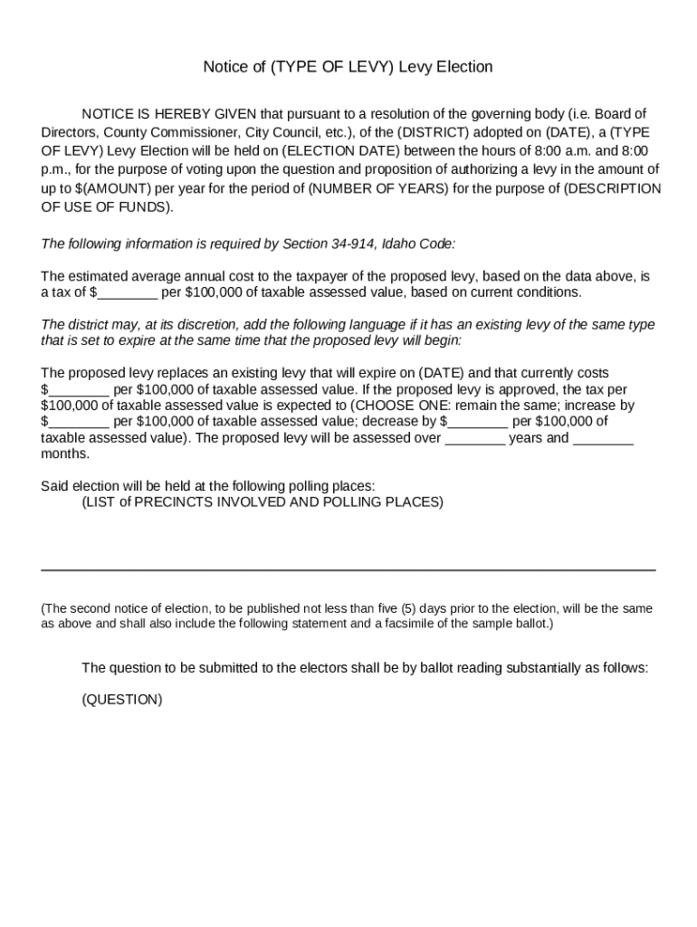 Levies Election Notice - sos idaho word template: frequently asked questions