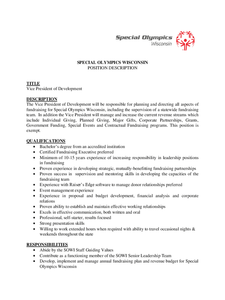 Explore the Vice President of Development role at Special Olympics Wisconsin, focusing on fundraising leadership and strategic partnerships for 2023.