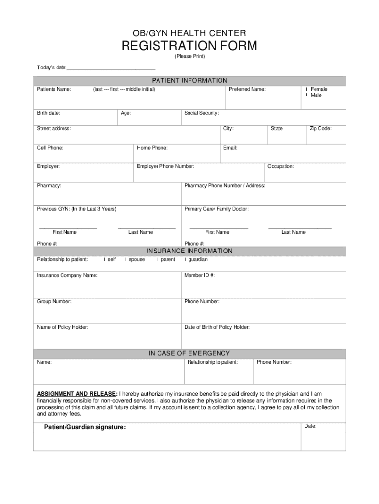 Complete the OB/GUN Health Center registration form for seamless patient onboarding. Ensure accurate information for insurance and emergency contacts.