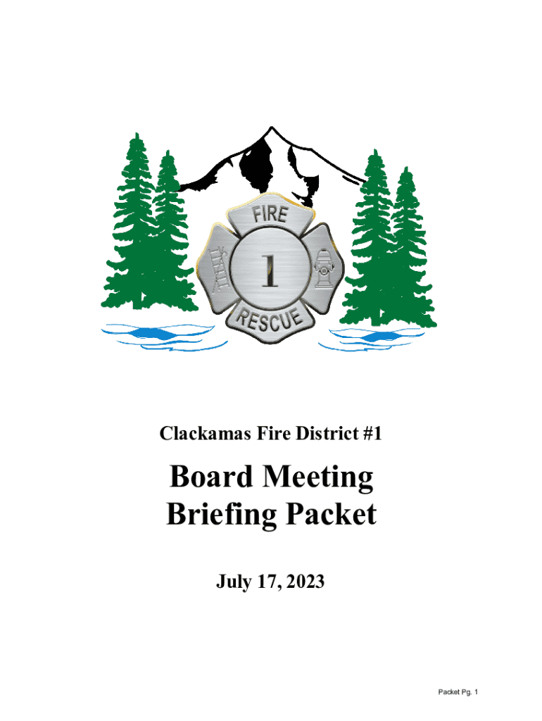 Clackamas Fire District #1Board Meeting Briefing Packet July 17, 2023Packet Pg. 1CLACKAMAS FIRE DISTRICT #1 Here for you Board of Directors Meeting July 17, 2023 Meeting Location: Hybrid: Station