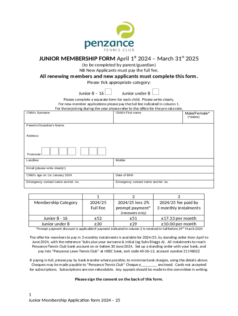 How should you fill out the Junior Membership - penzancetennisclub co template