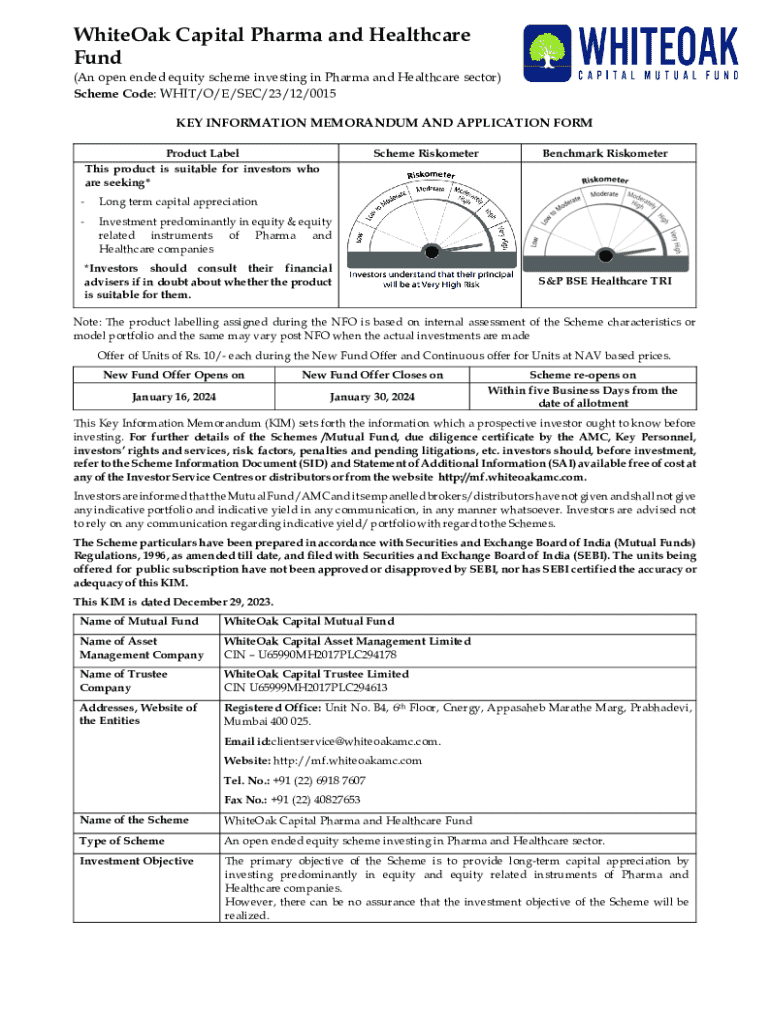 Get the free WhiteOak Capital Pharma and Healthcare Fund