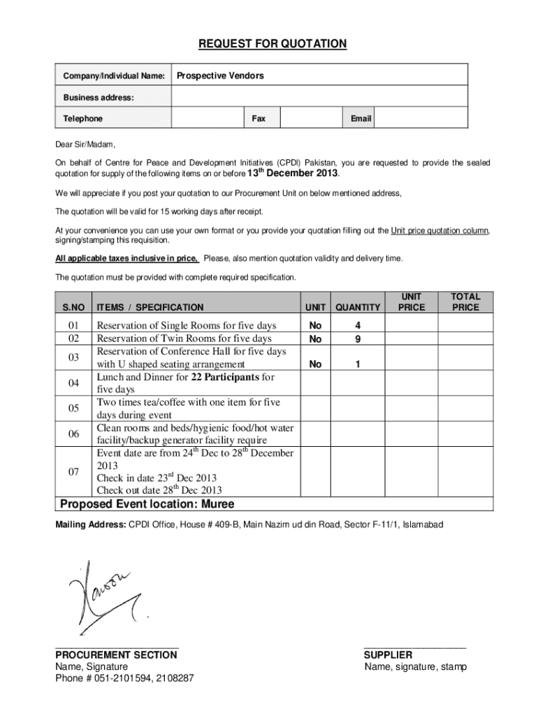 Get the free Request for Quotation