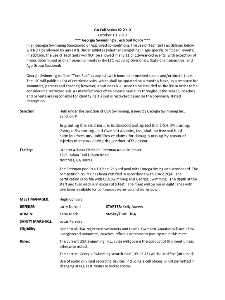 Discover the Georgia Swimming Tech Suit Policy 2019, ensuring 10 & Under athletes follow competition guidelines while understanding suit restrictions.