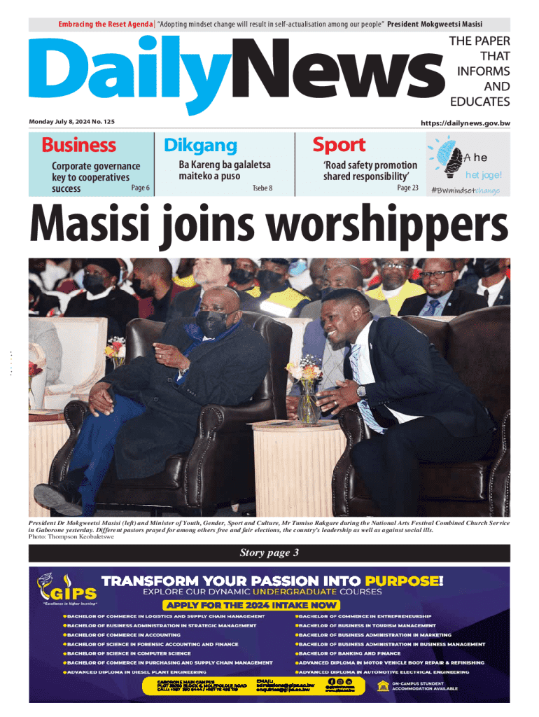 Embracing the Reset Agenda Adopting mindset change will result in selfactualisation among our people President Mokgweetsi MasisiMonday July 8, 2024, No. 125Business