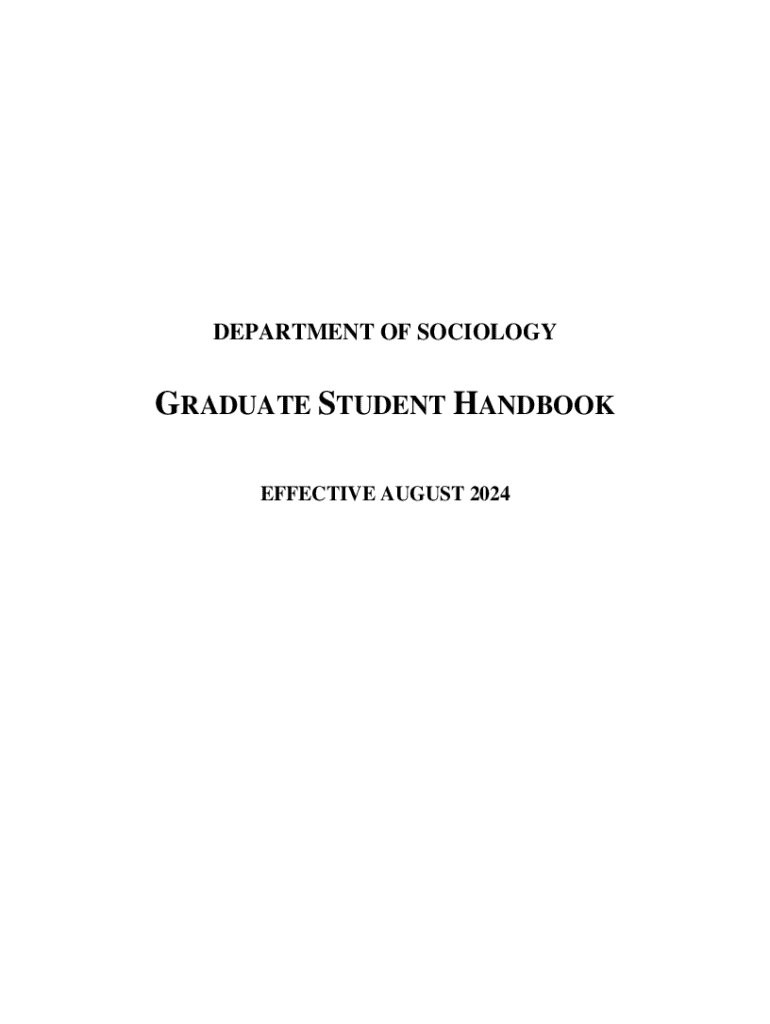 This handbook is a comprehensive guide for students pursuing graduate degrees in Sociology at Brandeis University, detailing programs, policies, and resources.