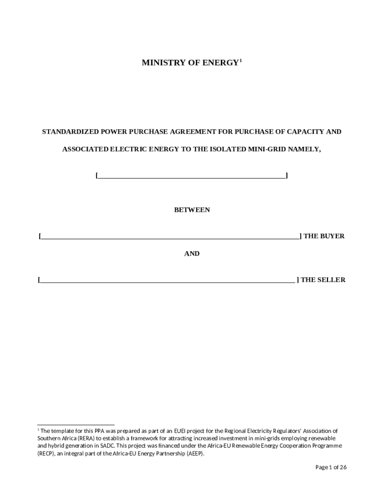 What is Standardized Power Purchase Agreement for ... Form?