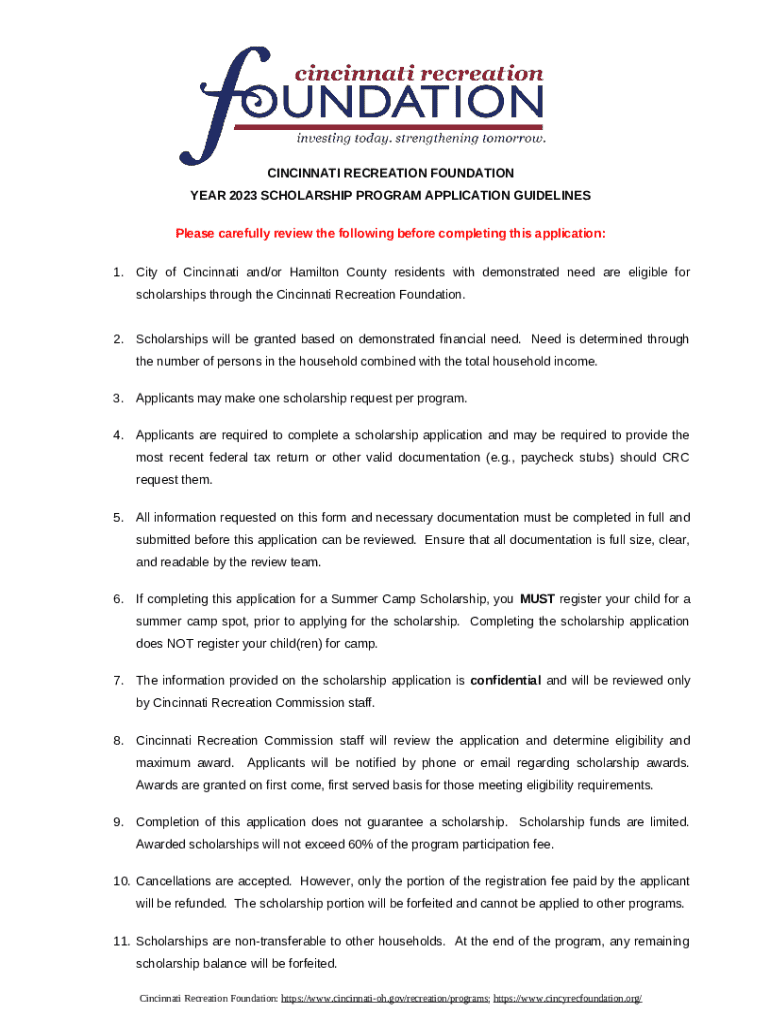 Frequently asked questions about the form Cincinnati Recreation Foundation Scholarship Program Application