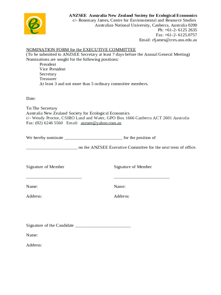 NOMINATION for the EXECUTIVE COMMITTEE word template: frequently asked questions