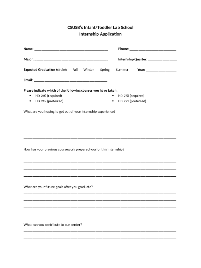 How should you fill out the Infant/toddler Lab School Internship Application template