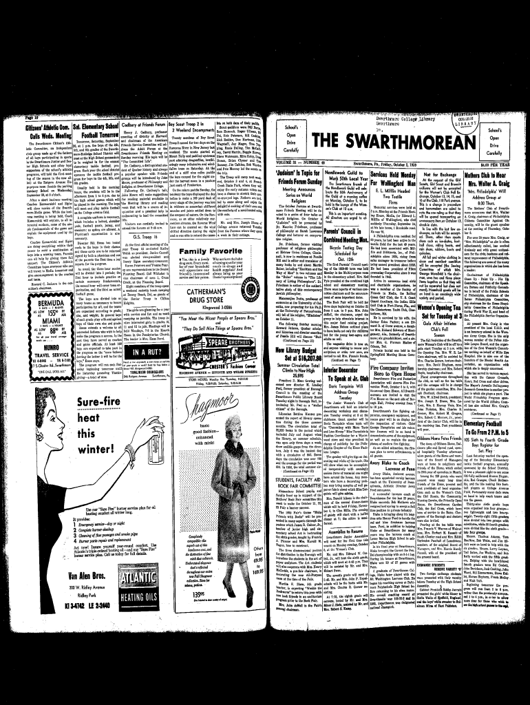 GHizaRS\' Athletic Com. Sal. Elementa.., School Football Tomonow Calls Weds. Mee_ingCad bury at Friends Forum Henry J. Cadbury, profeS80l\" emeritus of divinity at Harvard and chairman of the American Friends Service Committee will ad dress the Adult Foru.m at the Swarthmore Friends Meeting on Sunday morning. His topic wi) be \"The Committed Life\". Dr. Cadbury, a distinguished student of Quaker history and always a popular speaker with Friends groups wiJI be introduced by John Moore,...
