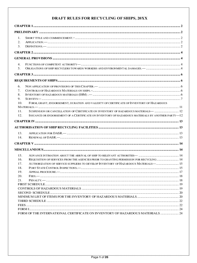 DRAFT RULES FOR RECYCLING OF SHIPS, 20XX CHAPTER 1 ................................................................................................................................................................................