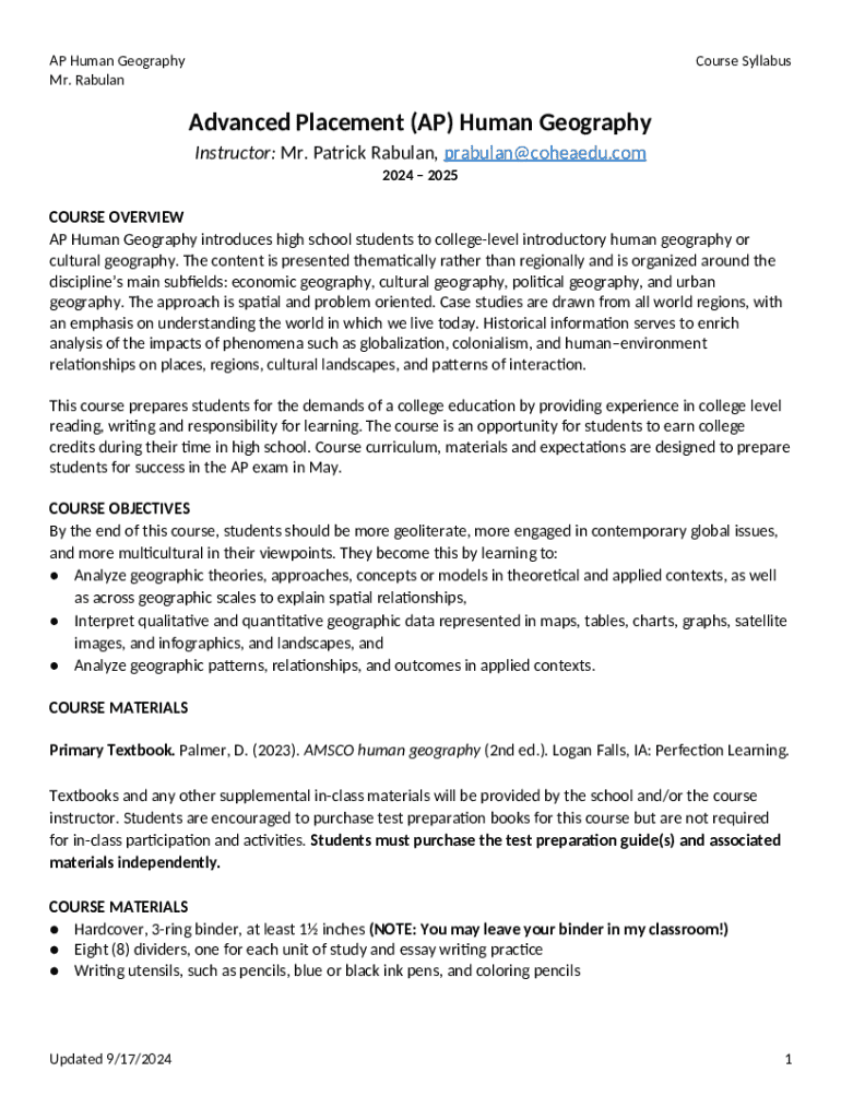 How should you fill out the AP Human Geography introduces high school students to college-level introductory human geography or cultural geography template