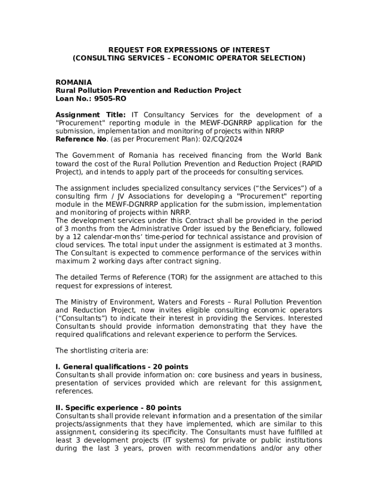What is request for expressions of interest - (consulting services Form?