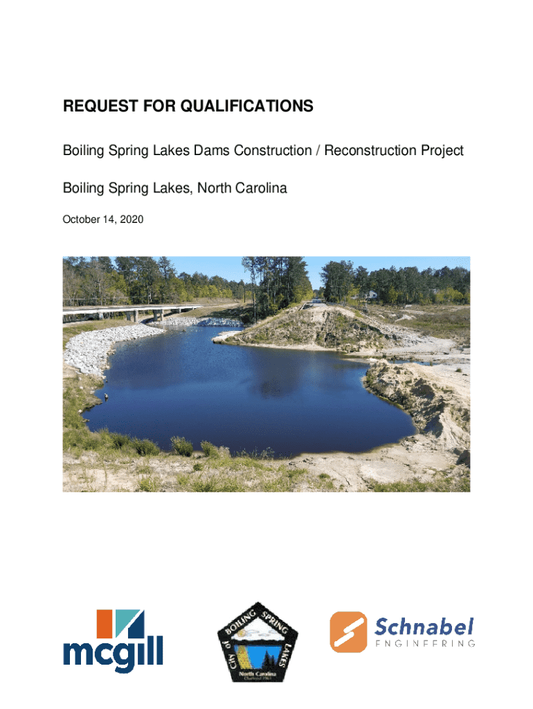 REQUEST FOR QUALIFICATIONS Boiling Spring Lakes Dams Construction / Reconstruction Project Boiling Spring Lakes, North Carolina October 14, 2020City of Boiling Spring Lakes Boiling Spring Lakes Dams