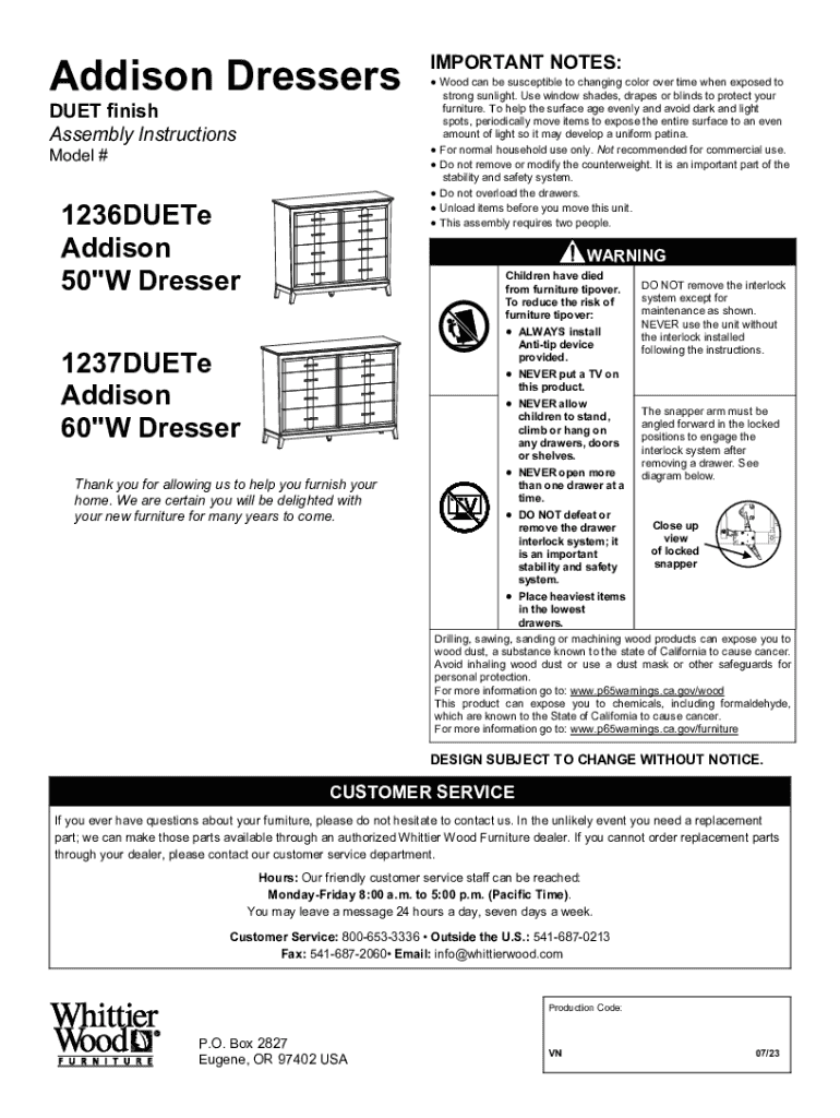 Fill out your addison dressers assembly instructions online with pdfFiller!