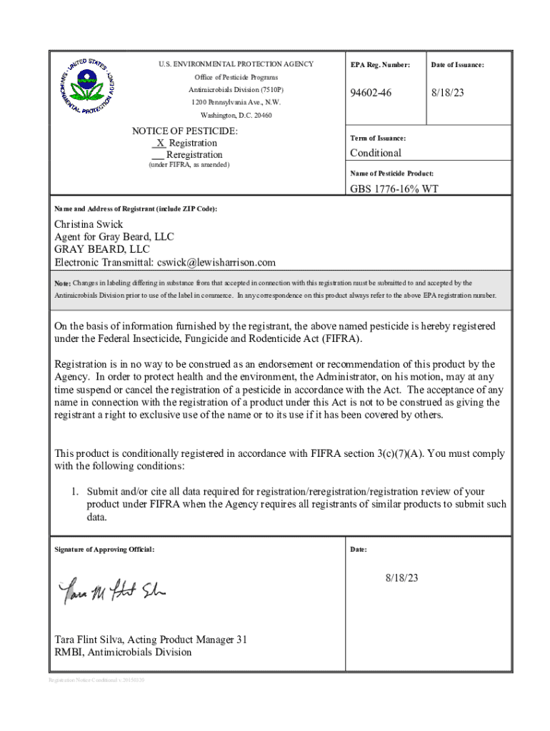 Get the free Pesticide Registration Notice