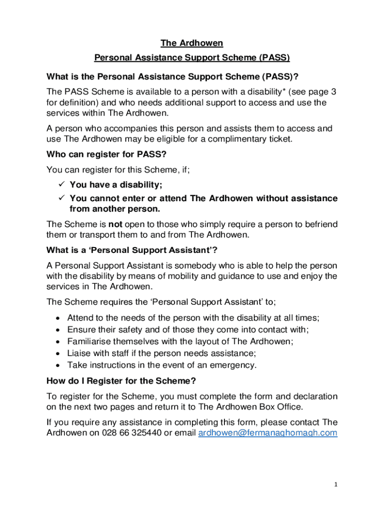 Register for the Personal Assistance Support Scheme at The Ardhowen for individuals with disabilities requiring support to access services.