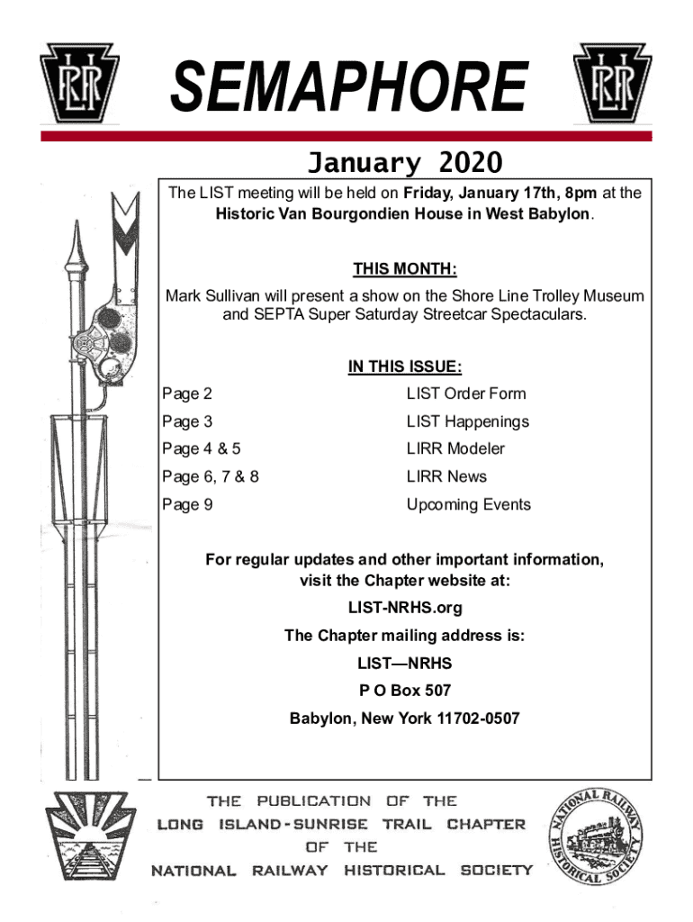 Explore the January 2020 SEMAPHORE issue featuring LIRR updates, member news, and upcoming events. Join us at the LIST meeting for presentations and camaraderie.