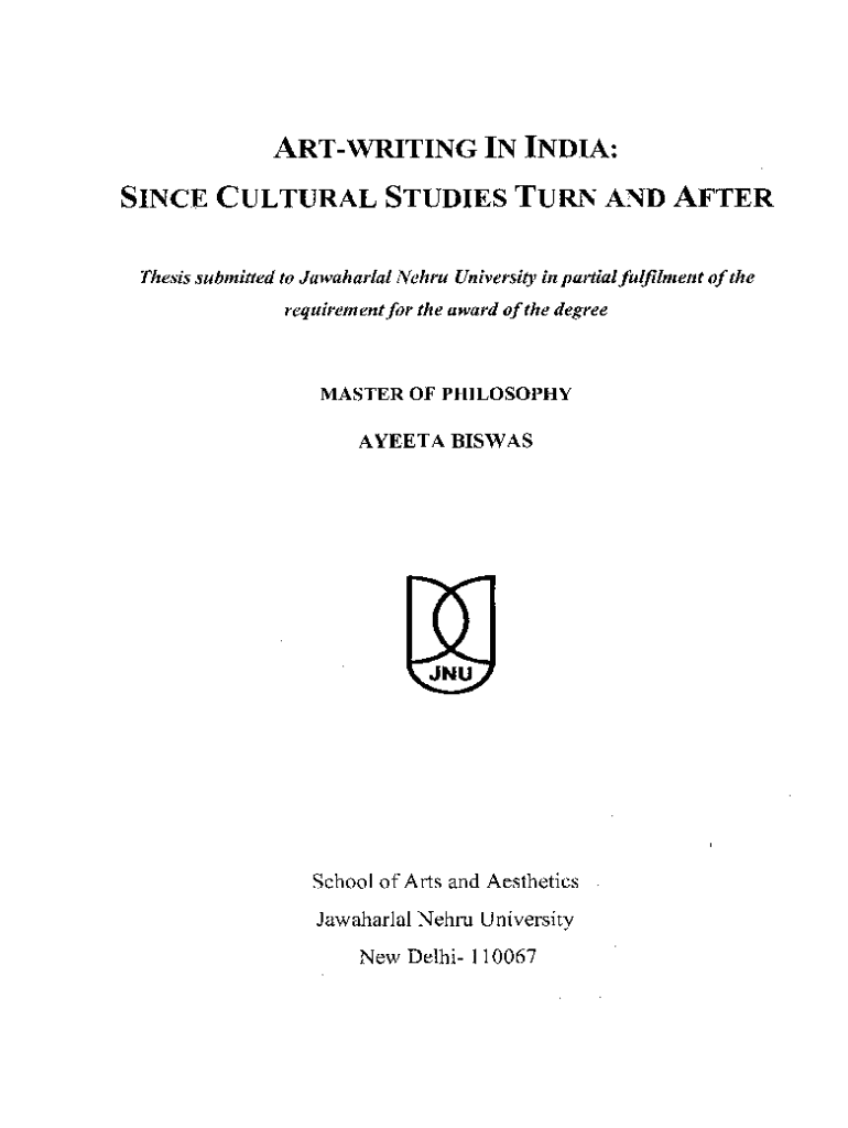 This dissertation explores the evolution of art writing in India post-cultural studies, analyzing shifts in modernism, popular art, and interdisciplinary approaches, highlighting key scholars and texts.