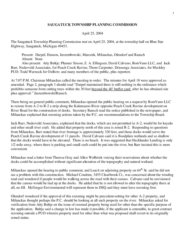 Get the free The Saugatuck Township Planning Commission met on April 25, 2004, at the township ha...