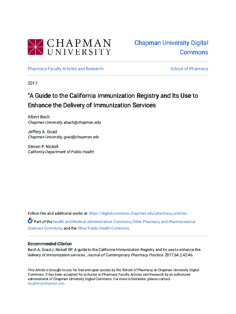 Get the free A Guide to the California Immunization Registry and Its Use ... - digitalcommons cha...