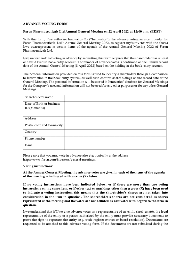 Authorize Innovative to register your advance votes for the Aaron Pharmaceuticals Ltd Annual General Meeting 2022. Vote by 19 April 2022.