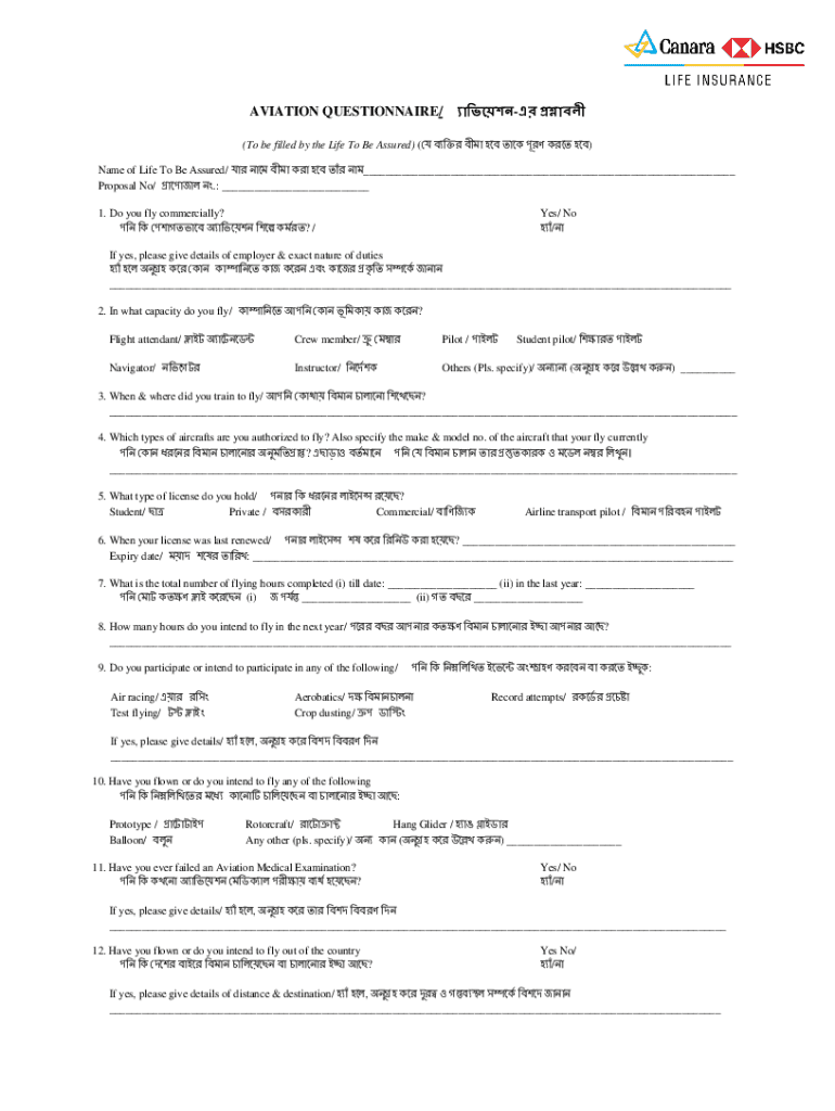 Complete the Aviation Questionnaire to provide essential flying information for life assurance application. Ensure accuracy for assessment.