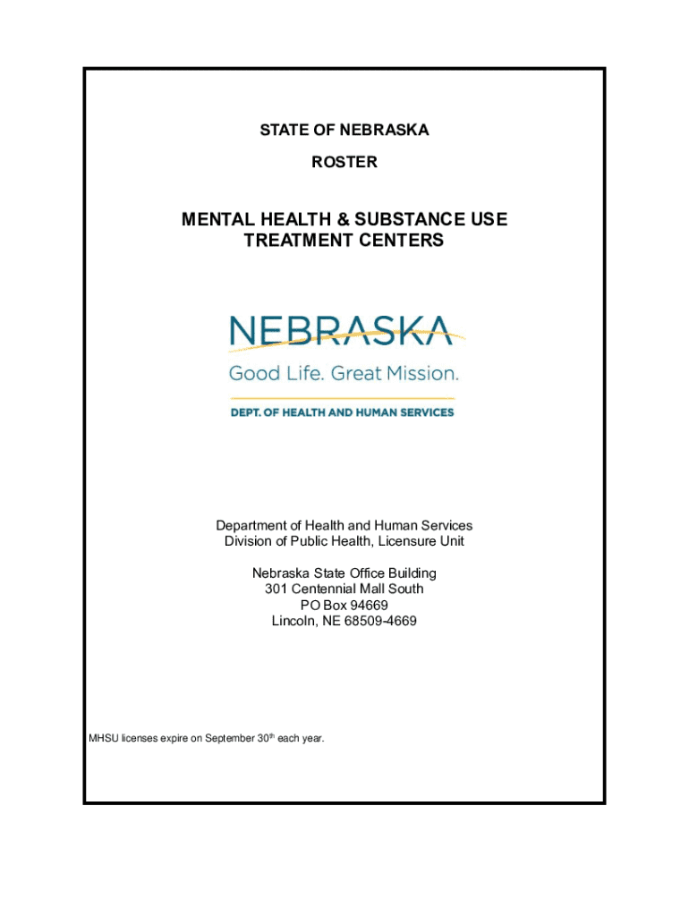 Get the free Nebraska Mental Health & Substance Use Treatment Centers Roster