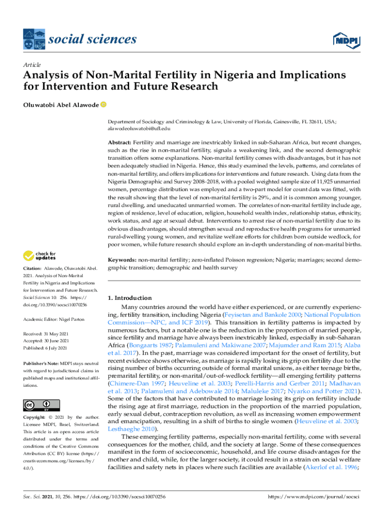 Get the free Analysis of Non-Marital Fertility in Nigeria and Implication