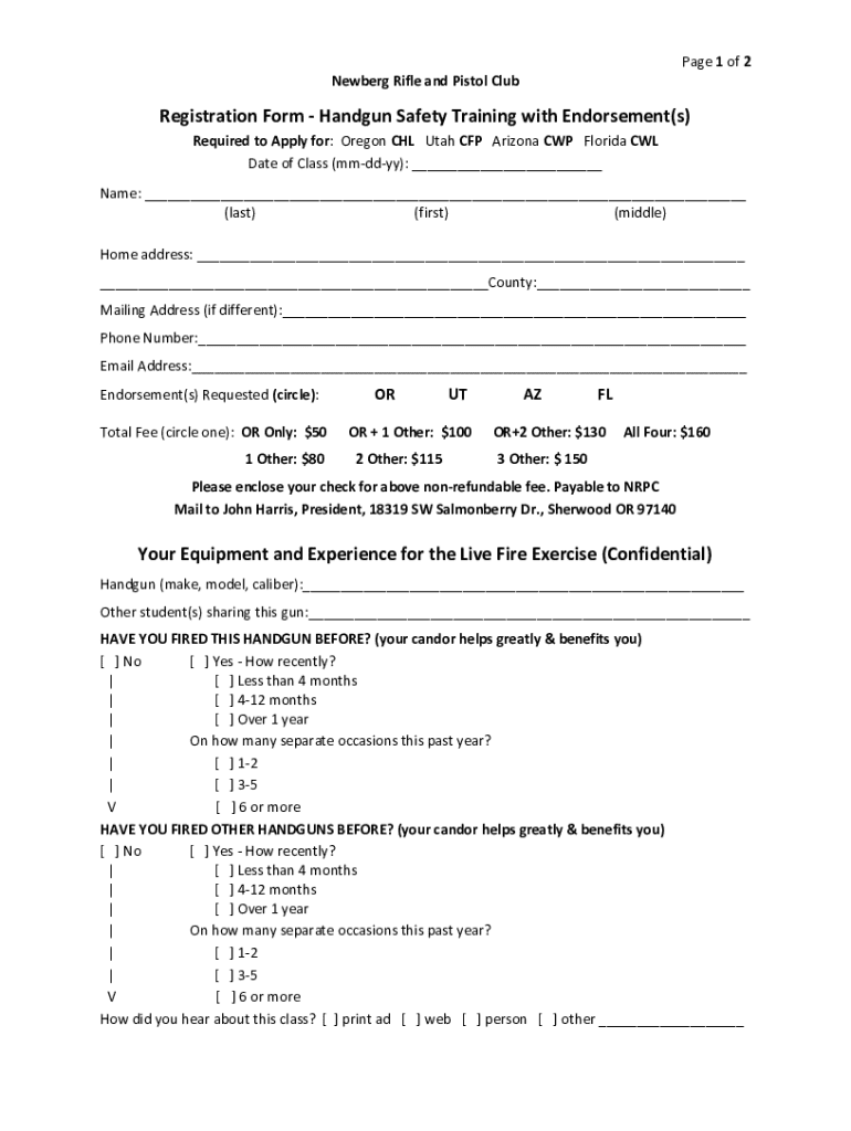 Edit registration form - handgun. Add and change text, add new objects, move pages, add watermarks and page numbers, and more. Then click Done when you're done editing and go to the Documents tab to merge or split the file. If you want to lock or unlock the file, click the lock or unlock button.
