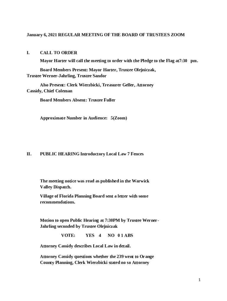 Frequently asked questions about the form Regular Meeting of the Board of Trustees - January 2021