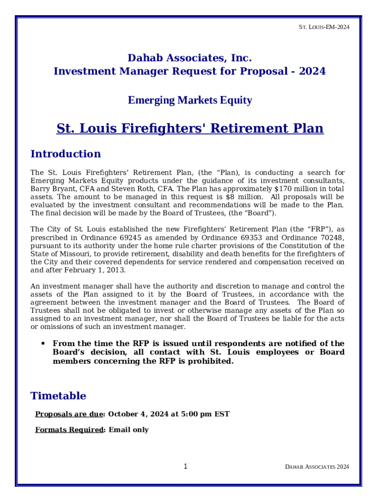 Investment Manager Request for Proposal - 2024 word template: frequently asked questions