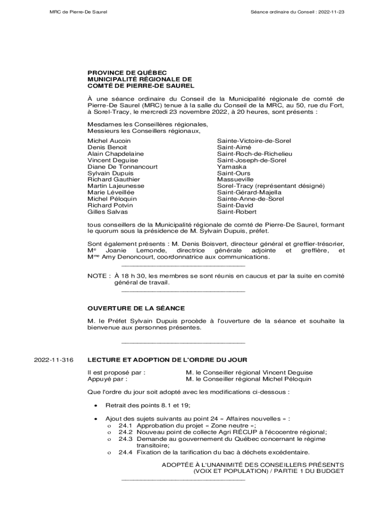 MRC de PierreDe SaurelSance ordinary Du Conrail : 20221123PROVINCE DE QUEBEC