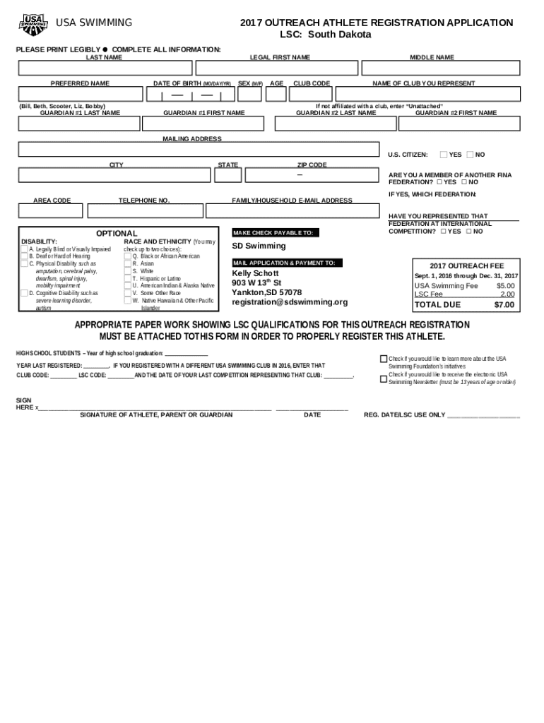 How should you fill out the 2017 Outreach Athlete Registration Application template