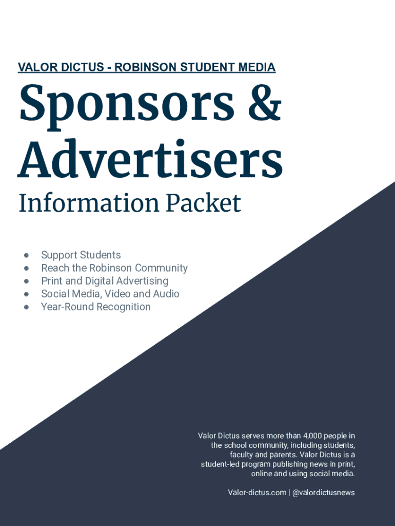 Explore robust advertising options with Valor Dictus for the 2021-22 school year, targeting over 4,000 members of the Robinson community through diverse platforms.
