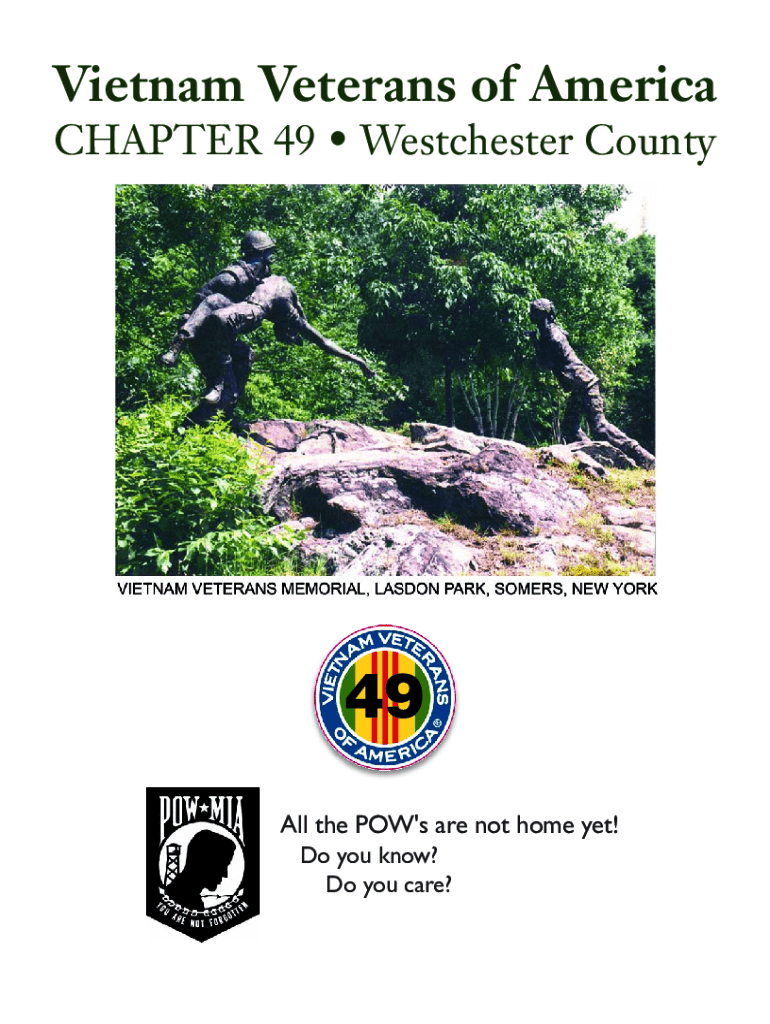 Vietnam Veterans of America CHAPTER 49 Westchester CountyVIETNAM VETERANS MEMORIAL, LASDON PARK, SOMERS, NEW YOWestchester County Chapter 49 Vietnam Veterans of America P.O. Box 224 Pleasantville,